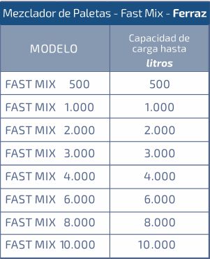 Eje fijo con paletas, carga de 20 - 100% del volumen útil del equipo.