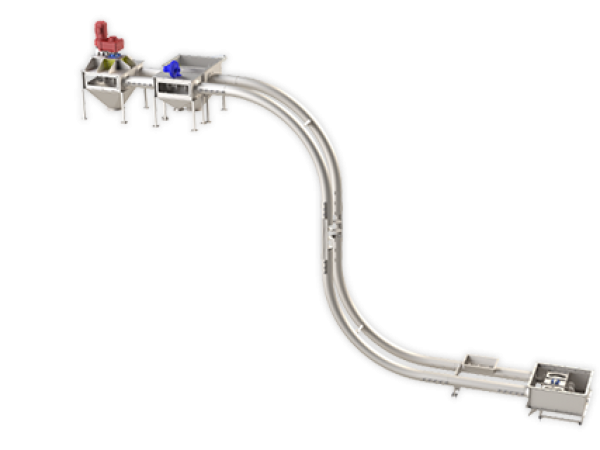 Disponible en tres modelos con diferentes capacidades, el transportador tubular de cadena es especialmente adecuado para el manejo de productos secos y delicados, que requieren cuidado y protección.