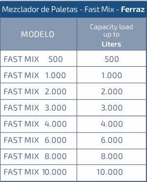 Fixed axle with paddles, possibility minimum loading of 20% of the volume of the equipment, carbon and stainless steal.